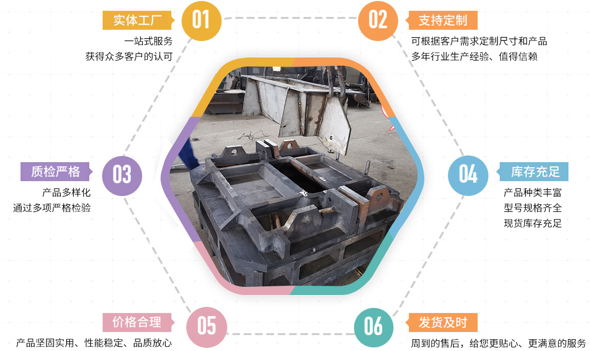 主要產(chǎn)品有:鋼筋壓塊,廢舊剪切料、礦山及水泥機械配件、鐵路機械及工務(wù)配件、電解鉛陽極板、母模、粗銅模、陽極模、渣包等。